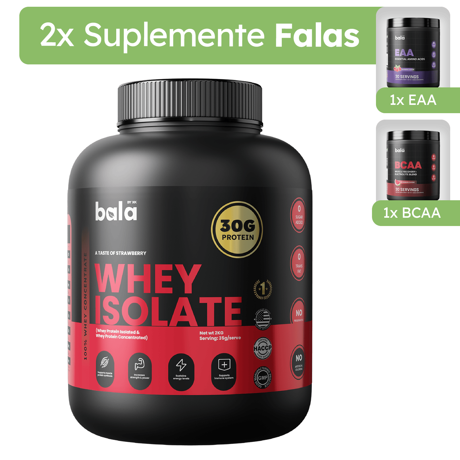 Enjoy the rich strawberry flavor while fueling your body with 30 grams of high-quality protein per scoop. Our Strawberry Whey Isolate supports rapid muscle recovery, lean muscle growth, and provides a clean, additive-free protein source. Ideal for post-workout or as a delicious protein boost, it’s perfect for athletes, fitness enthusiasts, or anyone looking to maintain optimal nutrition.